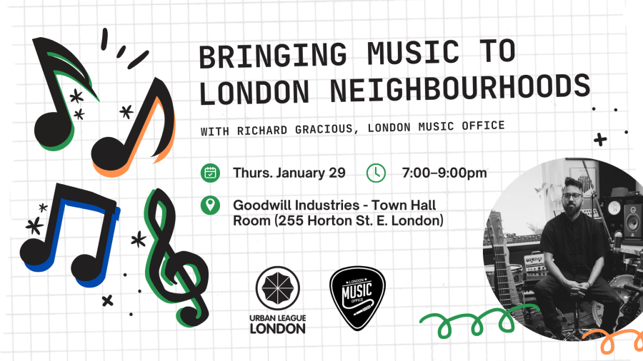 Join us for our January League Event on Thursday, January 29, from 7:00–9:00pm, with Richard Gracious, London Music Office, on London’s UNESCO City of Music designation, including ways small groups can bring music to London’s neighbourhoods!