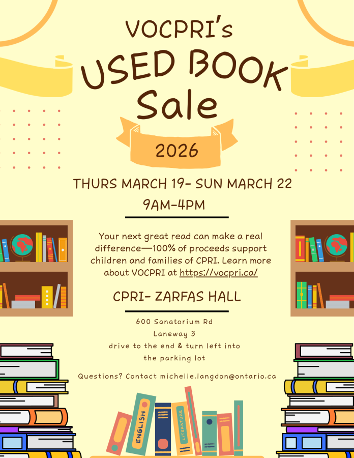 VOCPRI's Annual Used Book Sale is taking place from 9AM-4PM daily from March 19-22. Free entry. Book donations being accepted.